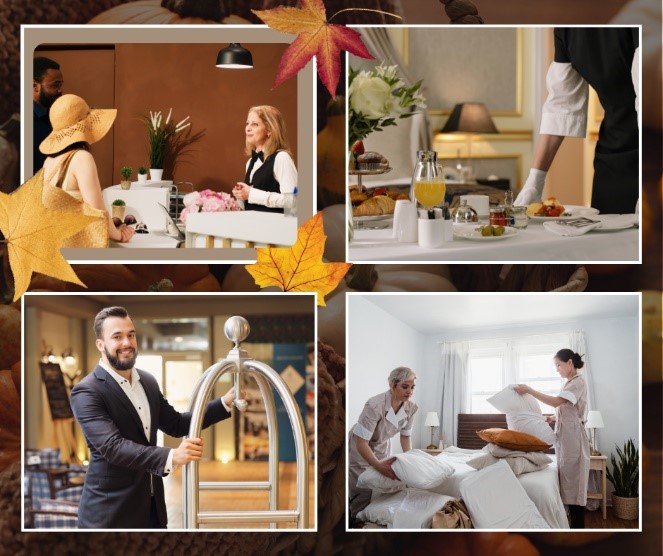 อีกหนึ่งอุตสาหกรรม ที่มีการเจริญเติบโตอย่างต่อเนื่อง คือ ธุรกิจโรงแรม ซึ่งในทุกประเทศได้มีความต้องการตำแหน่งงานโรงแรมต่างๆ ในสายอาชีพนี้อย่างมากมายหลากหลาย ดังนี้